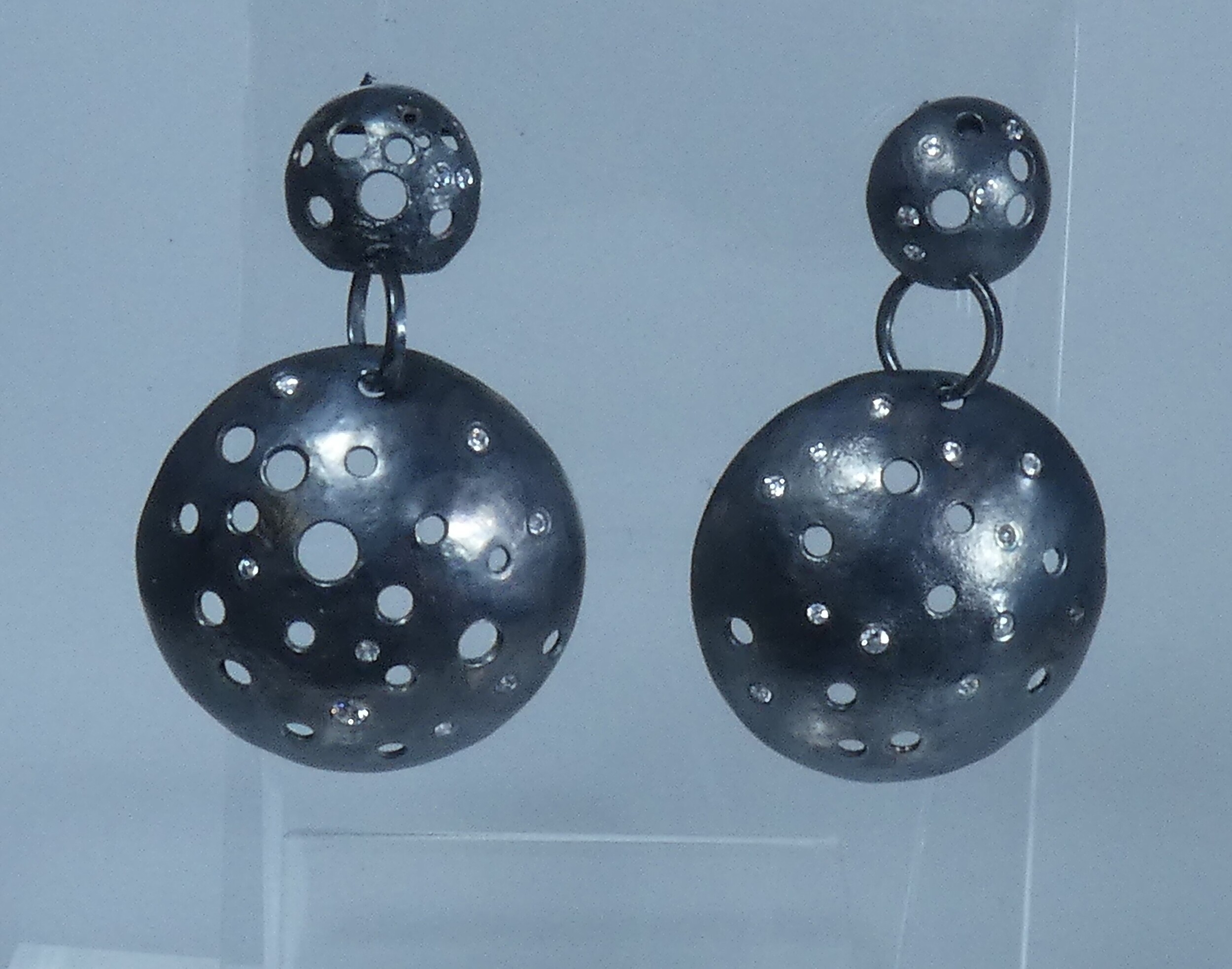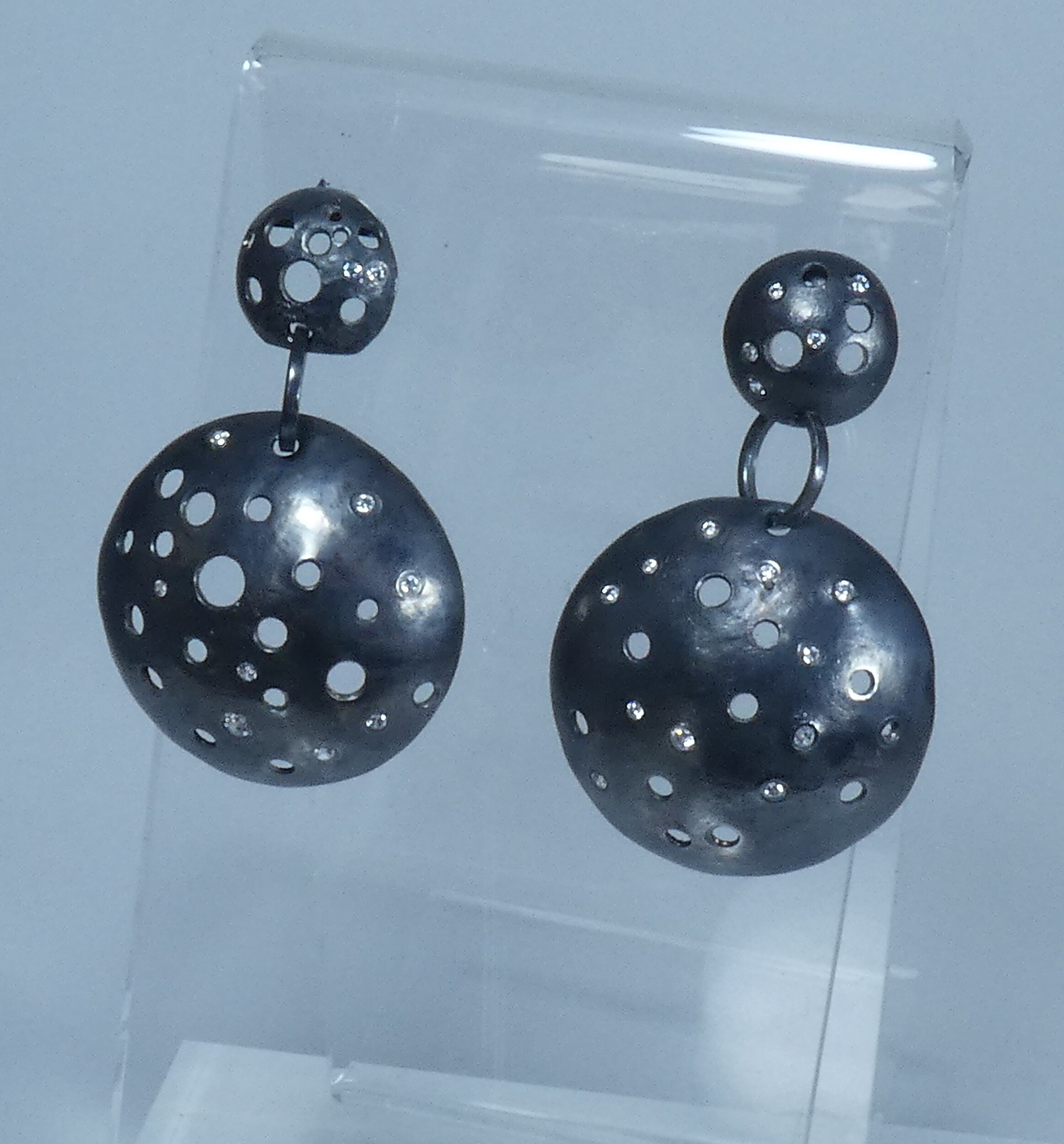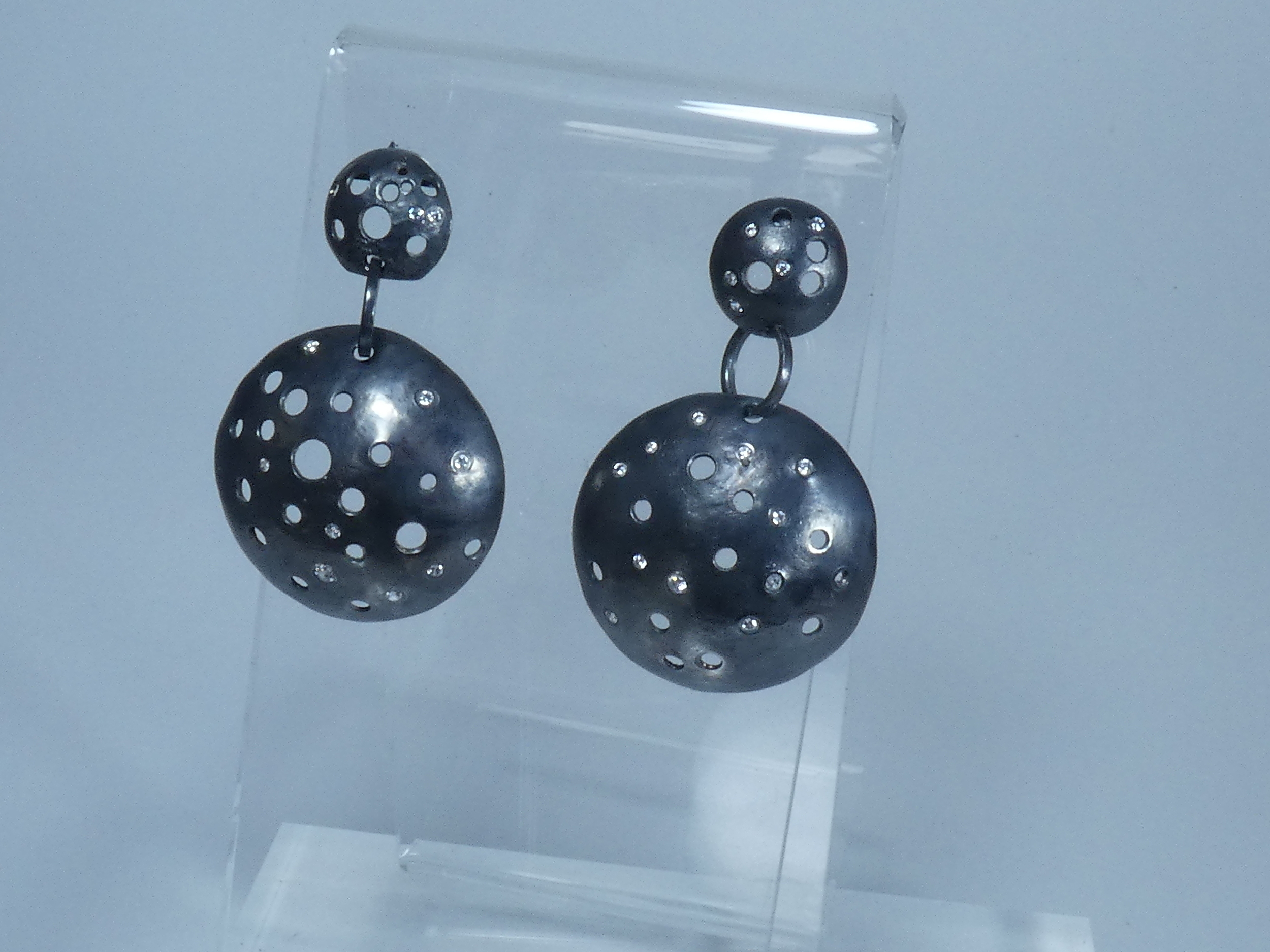 Recycled Sterling Silver Domed and set with with Cubric Zirconia and then oxidised to create the night skies.