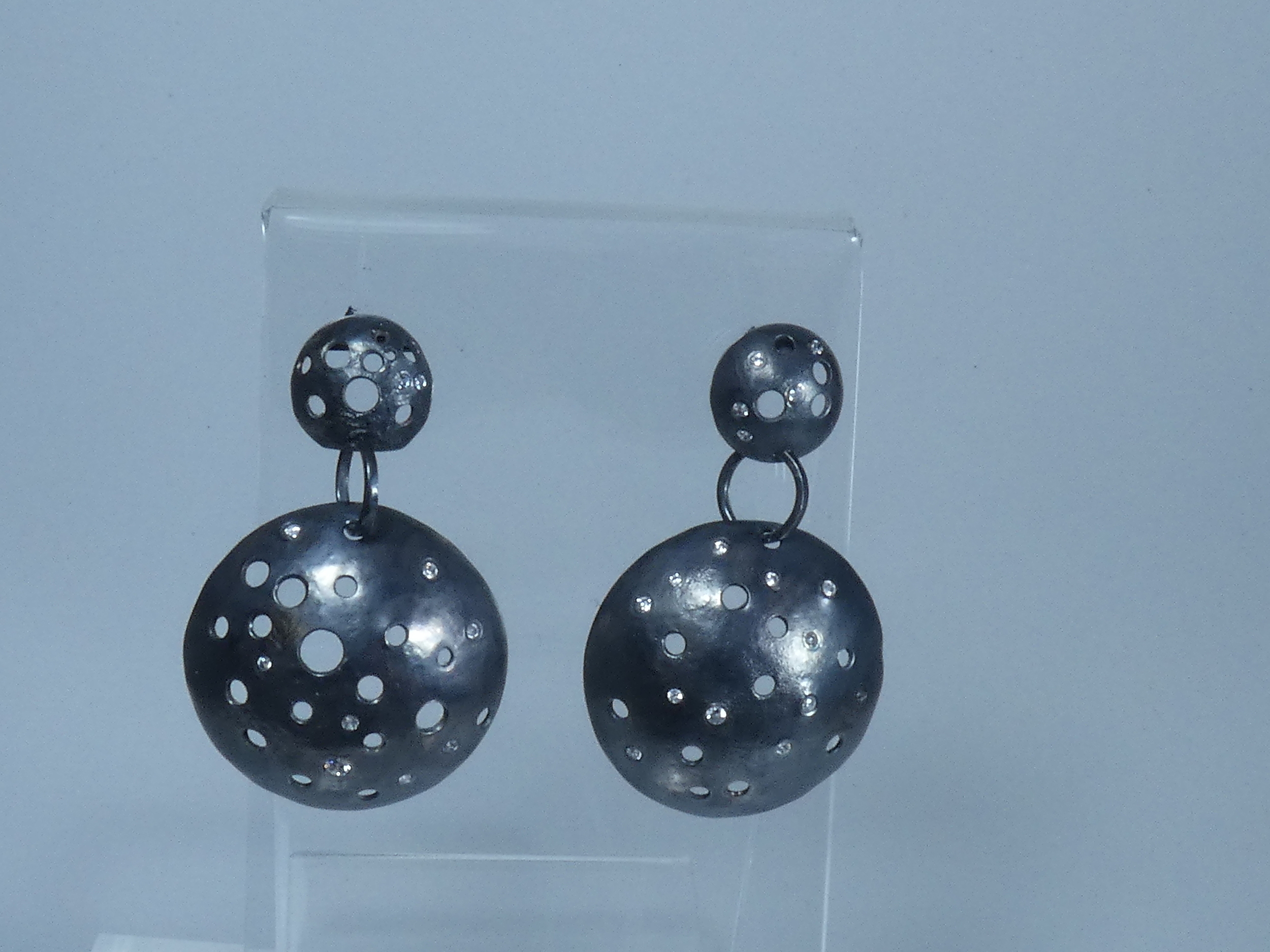 Stunning oxidised silver domed earrings set with Cubic Zirconias'